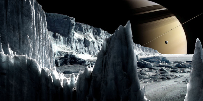 A conundrum persists however with respect to what could have possibly prevented such an ocean from freezing. It is quite possible indeed that there is a heat source due to Saturn’s gravity. As Enceladus orbits Saturn, Saturn’s gravity pulls on it. The mechanical energy generated applies immense strain on Enceladus (it is squeezed and stretched) and quite possibly, this mechanical energy is then converted into interior heat. Radioactive decay of rocky elements (separation of the ice and rocky core and then the radioactive decay of the rocky core warming the ice) might have equally played a role as well. Still another possibility might lie in Enceladus’ eccentric elliptical orbit. Enceladus orbits Saturn in resonance with Dione, another Saturnine moon. Enceladus and Dione both exert gravitational influence upon each other and the ratio of their orbital periods is 1:2. That means that each time Dione orbits Saturn once, Enceladus orbits Saturn twice. So, Enceladus is periodically stretched by Dione’s gravity. This leads to tidal friction, which could possibly power such activities exhibited by Enceladus.